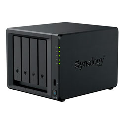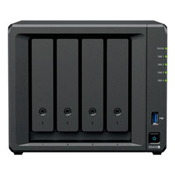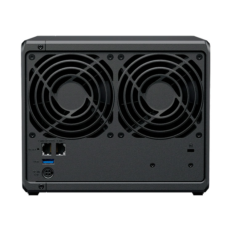 Storage NAS com 4 baias hot swappable, processador Intel Celeron 4-Core, 2GB DDR4 ECC, 2 slots M.2 NVMe, 1 porta LAN RJ-45 1GbE, 1 porta LAN RJ-45 2,5GbE e 2 portas USB 3.2. Solução de armazenamento DiskStation ideal para backup, sincronização e compartilhamento de arquivos com segurança.